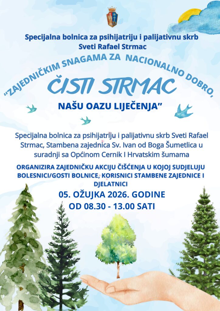 Vođeni tom mišlju održana je drugom godinom za redom akcija čišćenja pod nazivom „Zajedničkim snagama za nacionalno dobro – čisti Strmac, našu oazu liječenja“, s ciljem očuvanja prirodnog okruženja koje svakodnevno pruža mir, oporavak i nadu svima koji borave na području Strmca.