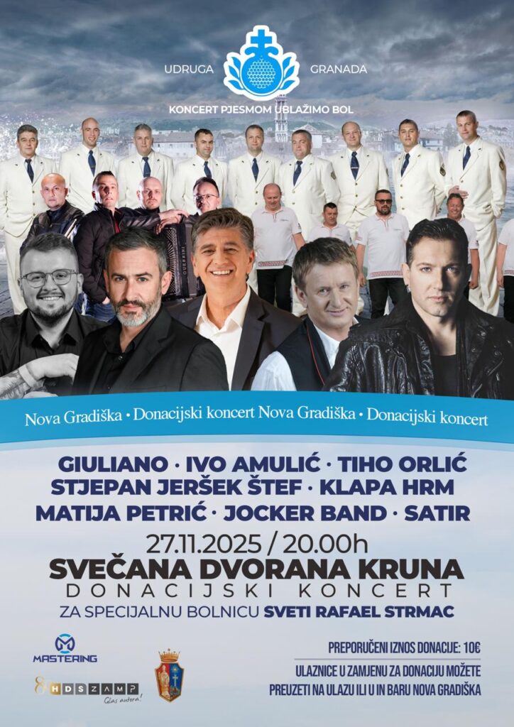 Koncert će se održati 27. studenoga 2025. godine u 20:00 sati u svečanoj dvorani „Kruna“, Ulica Alojzija Stepinca 11, Nova Gradiška.