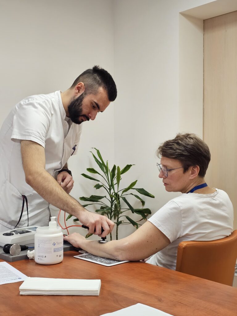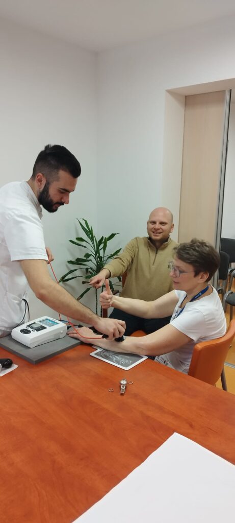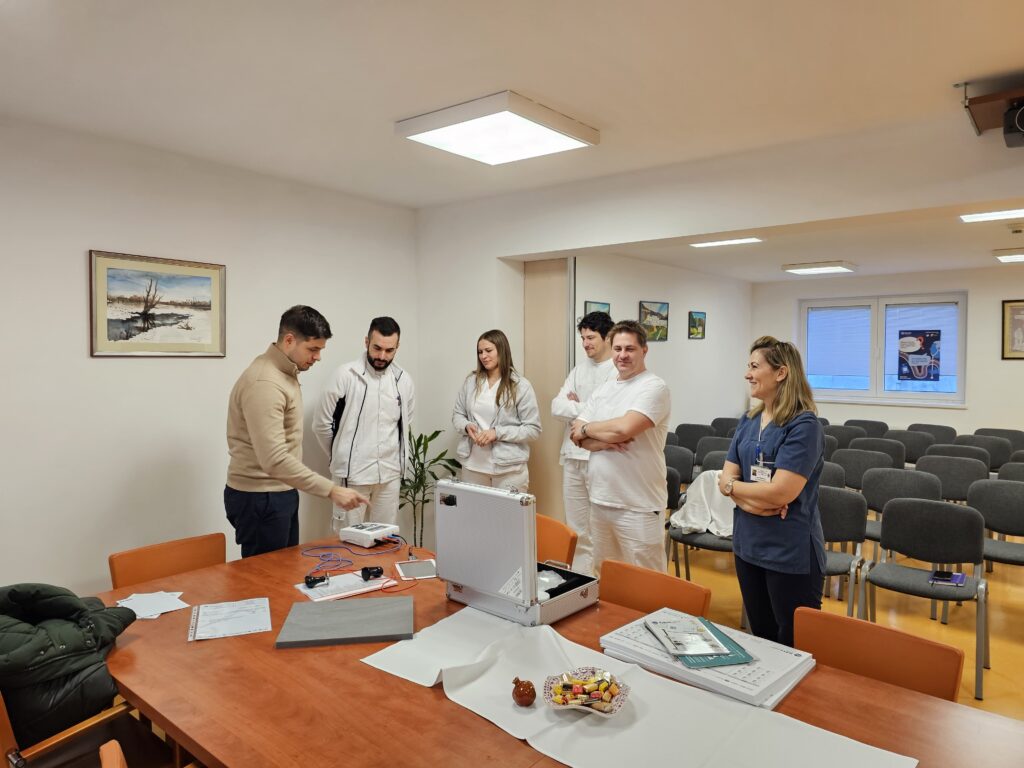 Povodom isporuke uređaja, gospodin Filip iz tvrtke Focus Medical održao je stručnu prezentaciju o uporabi uređaja Diacare 5000 djelatnicima Bolnice, upoznavši ih s njegovim osnovnim funkcijama, programima i terapijskim mogućnostima. Prve koje su imale priliku iskusiti djelovanje uređaja bile su ravnateljica Bolnice Maristela Šakić, dr.med.spec.psih. i glavna sestra Bolnice Luca Marković, koje su izrazile zadovoljstvo ovim vrijednim dodatkom medicinskoj opremi.