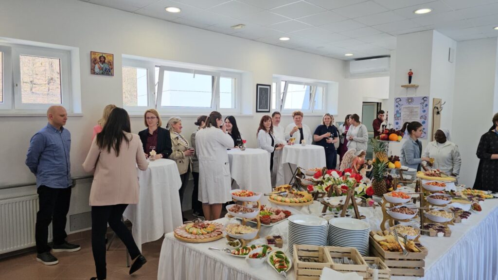U poslijepodnevnim satima provincijalna delegacija zajedno s novoimenovanim priorom fra Karlom, fra Giovannijem i ravnateljicom Maristelom uputila se na dogovoreni sastanak s požeškim biskupom Ivom Martinovićem na čijem se teritoriju nalazi naša bolnica. Biskup je pokazao iznimnu srdačnost, otvorenost i zanimanje za djelovanje Reda na području Požeške biskupije. Zahvalni Gospodnu na novoimenovanom prioru i cjelokupnom dosadašnjem petnaestogodišnjem djelovanju Reda Milosrdne braće, molimo za daljnju uspješnu suradnju u svjedočenju i naviještanju evanđelja kroz služenje u ljubavi onima koji su najpotrebniji naše pomoći.